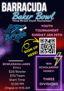 Event information, rules, and weblink to entry for the January 25th Youth “Barracuda Baker Trios” tournament has now been posted on the Youth Tournament page and Calendar of Events.